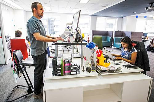 O diretor de comunicação Esteban Israel, 44, diz que o mais difícil no começo era superar o incômodo da posição. Há cinco meses, ele passa a maior parte do dia em pé. Entre os benefícios, ele destaca movimentar-se e interagir mais com os colegas.